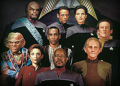 | Star Trek: Deep Space Nine Production: 3rd of the television series (1993-1999) Setting: The space station Deep Space 9 situated next to a Wormhole (mid-24th to late-24th century) Characters: Sisko, Kira, Odo, Bashir, Dax, O'Brien, Quark, Worf |