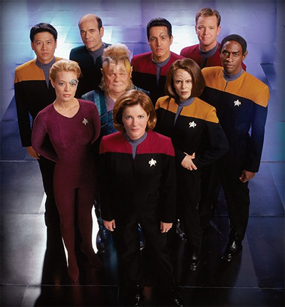 | Star Trek: Voyager Production: 4th of the television series (1995-2001) Setting: The starship USS Voyager NCC-74656 (late-24th century) Characters: Janeway, Chakotay, Tuvok, Paris, Torres, Kim, "The Doctor," Neelix, Kess, and Seven of Nine |